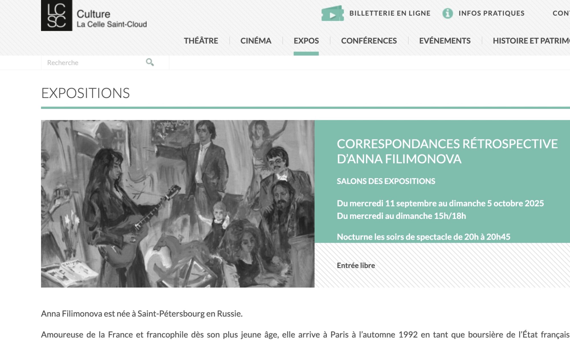 Continuer la lecture de « L’exposition annuelle de l’Association Des Amis du Salon d’Automne »Anna Filimonova « Correspondances » exposition retrospective de 30 ans de carrière